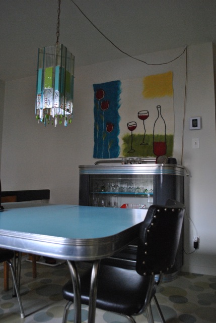 Ça m’a donné l’idée de partager avec vous cet avant-après.. Voilà donc la petite histoire du vaisselier de Johanne, de Québec (acquis pour la somme de 40 $) telle qu’elle me l’a écrit : « Ce vaisselier était en bon état bien qu’il manquait la tablette du bas et que la peinture d’origine, très jaunie, s’écaillait un peu et présentait quelques poques d’époque. J’ai utilisé de l’alkyde très lustré de Benjamin Moore fer forgé (2124-10) et bleu Bahamas (2055-40). J’ai poncé le meuble à la main, mais la première couche de gris a agi comme décapant sur la peinture d’origine, la peinture a fissuré par endroit et boursoufflé à d’autres. J’ai laissé bien sécher et j’ai poncé de nouveau. J’ai donné deux nouvelles couches de gris et tout est beau. Les tablettes n’ont posé aucun problème. |