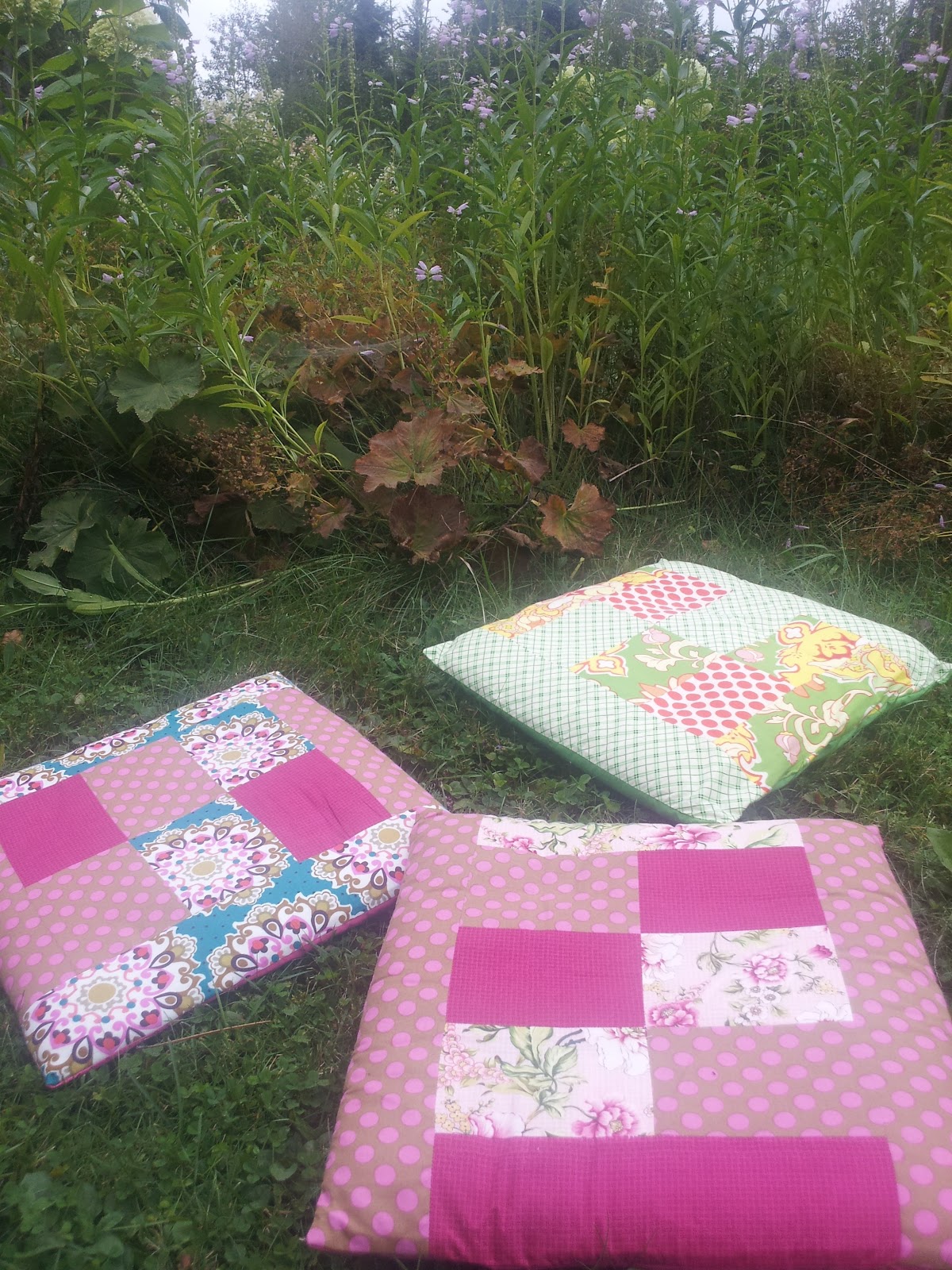 Ça commence à faire longtemps que je n’ai pas écrit un petit quelque chose ici ! Je suis trop occupée par le démarrage de ma page Facebook. Voici donc une autre de mes petites trouvailles: des chaises en fer forgé achetées 5 $ chacune lors du déménagement de Fauchois Fleurs sur la rue St-Denis, sur lesquelles j’ai ajouté des coussins bricolés avec ma maman à l’aide de tissus trouvés chez L’Effiloché. La photo a été prise dans notre petite paradis, au chalet.